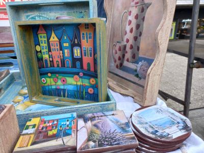 ešarpe, slike, ukrasne figure od keramike ili oplemenjene dekupaž tehnikom,